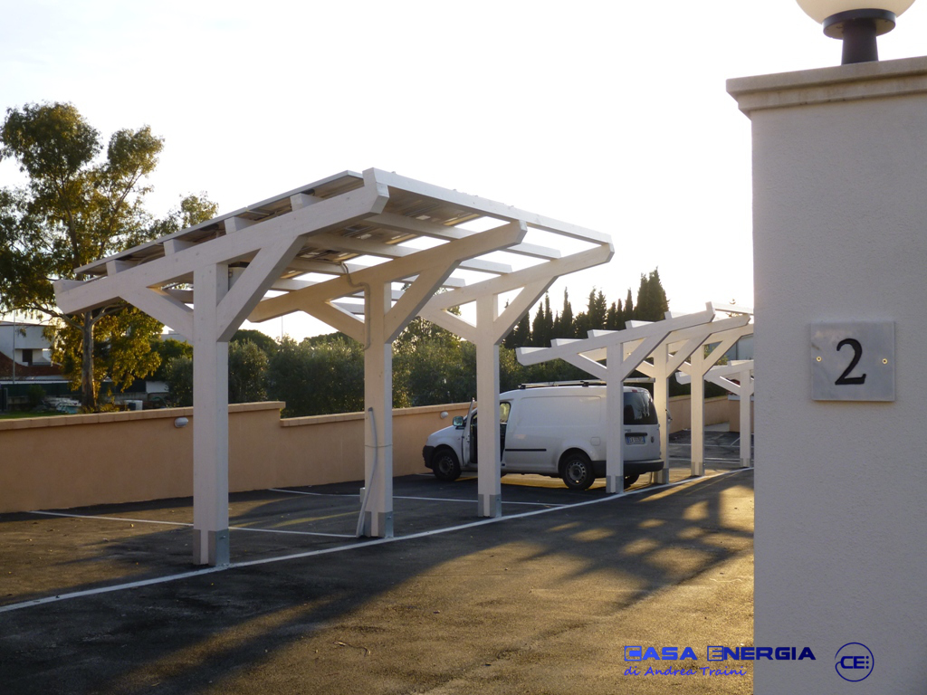 Casa Energia collabora con imprese specializzate nella realizzazione di pensiline in legno. Unendo le specifiche competenze nei singoli settori, siamo in grado di realizzare un binomio “pensilina/impianto fotovoltaico” esteticamente molto accattivante, performante ed estremamente duraturo nel tempo.